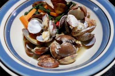 高温に熱した油で揚げるのが普通の調理法ですが、アラセブンはフライパンに油をひき、そこへ餃子を投入、箸で裏返しながら全体にや焼き色がつくようにして調理しました。(説明書きによれば、冷凍する前に加熱してあるようです。)