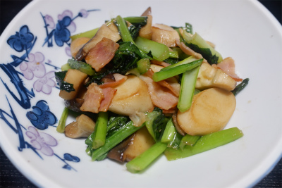 きのうの料理 ~ 小松菜、エリンギとベーコンの炒め ~
