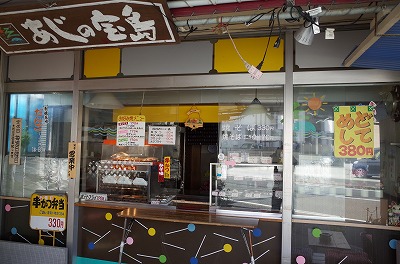 緑地の近くにある串カツ屋さん「あじの宝島」。毎年、ここで串かつを買ってます。