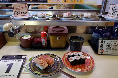 我が家から車で10分ほどのところにある新しい回転寿司屋さんに行ってきました。
