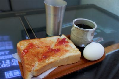 モーニングはパンとゆで卵が付いて380円でした。パンが半切れでないところが少しグー。