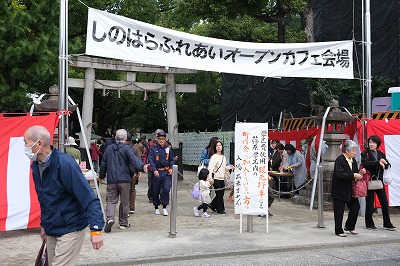 11月2日日曜日、近くの篠原八幡社境内で、「しのはらふれあいオープンカフェ」という催しがあったので、覗いてみました。