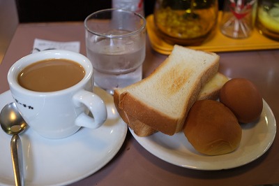 モーニングは、パン二切れとゆで卵がついて、400円。