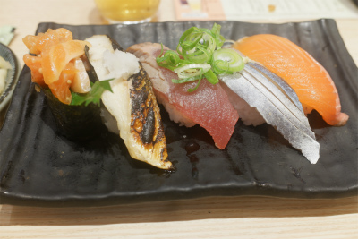 魚のお供は、ネギ、ししとう、しいたけ、厚揚げです。