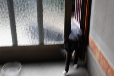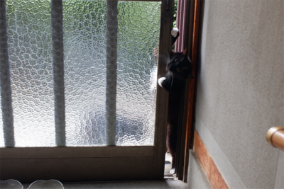 (1)玄関のガラス戸に猫たちの姿が、、、
