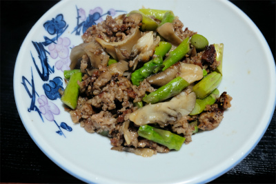 きのうの料理 ~ アスパラとひき肉のバタポン炒め ~