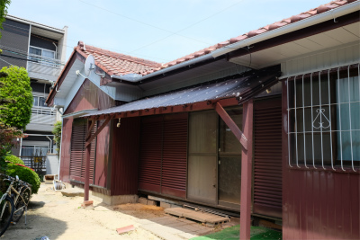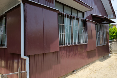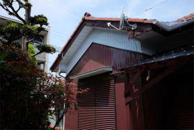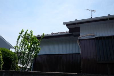 雨模様の日が続いたため、少し日数がかかりましたが、5月2日に塗装の残工事、そして3日にテラスの波板(トタン)張りが行われました。