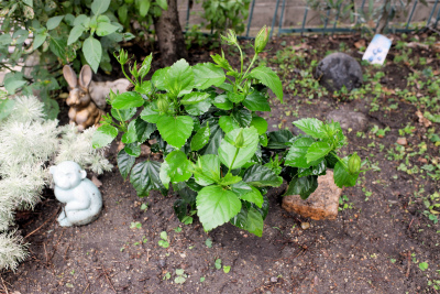 我が家にはおよそ80本の樹木があり、植樹する場所が次第に限られてきていますが、今回は花壇の中に植えました。