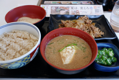 「夏は、麦とろ」に異論はなく。「牛皿・麦とろ冷汁御膳」(税込855円)をいただきました。