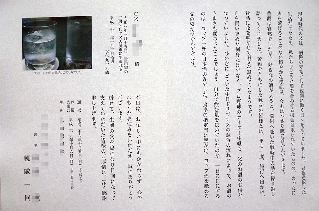 さて、葬儀の際いただいた挨拶状です。(クリックすると拡大されます。)