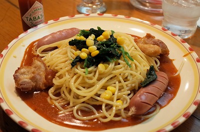 太麺を使いました。もっちりとして、美味しかったです。