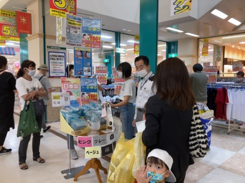 ヨシヅヤで人だかりができていたので、覗いてみると、マスクの販売をしてました。担当のおっさんがブースに付ききり。最近よく見る光景です。