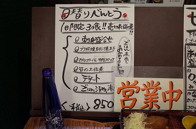 残念ながら、ワンコインランチはなくなっており、代わりに30食限定の日替りべんとう(850円)をいただきました。