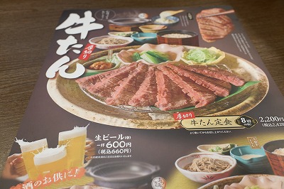 「牛たん厚切り8切(4枚)定食」(税込み2,420円)。
