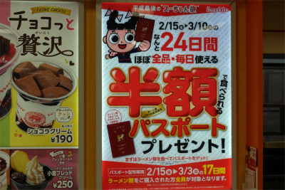 ところで、気になるのが春先恒例の「スーちゃん祭」ですが、店頭に告知ポスターが貼ってありました。