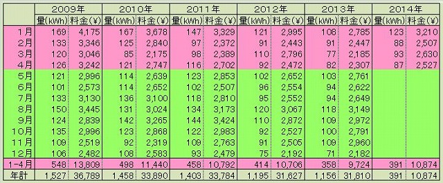 今月の電気代 (2014.4)