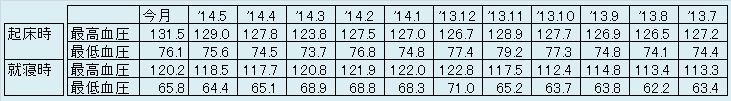 ちなみに、記録をとりだしてから8年が経ちますが、起床時収縮時の平均値が130を超えたのは今回が初めてです。