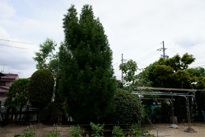 次は、庭の東南にある木を剪定します。高野槇、ユーカリと高い木が多いです。