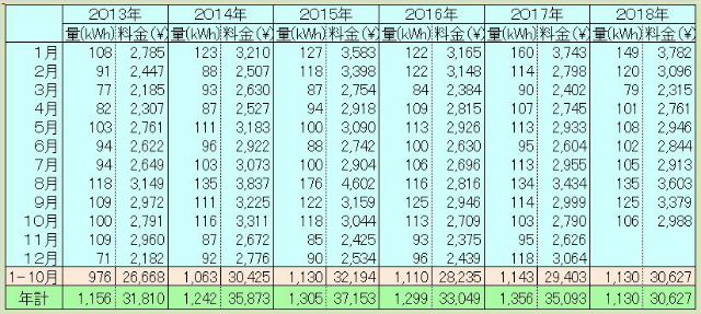 今月の電気代 ~ 2018年10月 ~