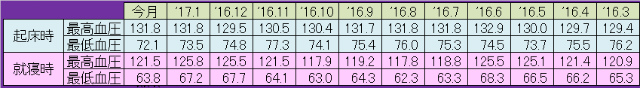 因みに、血圧の月間平均値の推移は下表の通り。