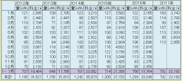 今月の電気代 ~ 2017年7月 ~