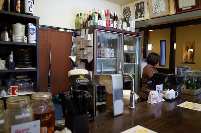 カウンター席、テーブル席に低床の掘りごたつ席があり、BGMにジャズが流れるおしゃれな感じのお店。