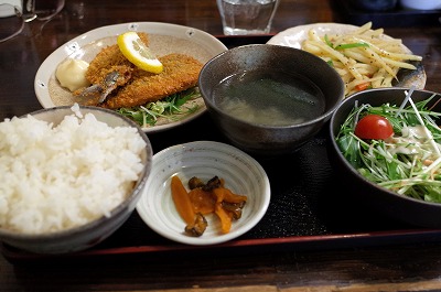 メインのおかずはイワシのフライと細切りジャガイモの炒め物でした。これにサラダ、漬物、スープ、ご飯が付きます。
