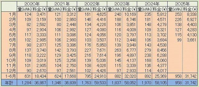 今月の電気代 ~ 2025年6月 ~