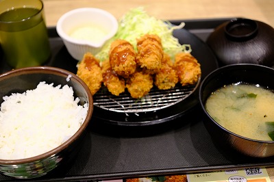 この時期のメニューである、「カキフライ定食」を選択。カキフライx7個の豪華メニュー(笑)。