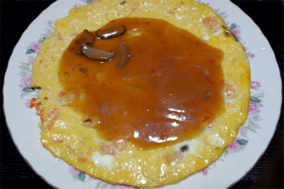 日本ハムの中華名菜「かに玉」(具材、あんかけソース入り)にたまごとむきえびを加えて、フライパンで焼いただけの簡単料理です。