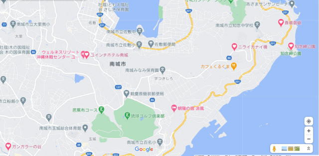 平和祈念公園から北東に移動し、ガンガラーの谷(地図の左下)に到着。