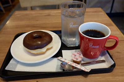 甘いドーナッツに合うコーヒーがとても美味しく、お代わり自由なので、お値打ちです。