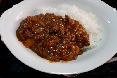 普段食べているカレーとは明らかに違ったカレーでした。とりわけ、水を入れない(=野菜から出たの水分のみ)で、ルーを入れて仕上げたので、こってりとした仕上がりとなったところ。