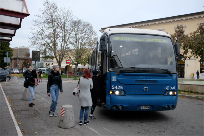 オルヴィエートの駅前から朝8時発のバスに乗りました。観光客でいっぱいと予想していたのに、乗客は地元の女性数人とアラセブンだけでした。