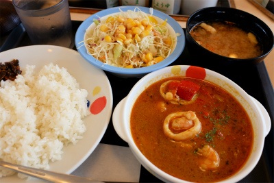 「夏のシーフードカレーフェア」を華々しく開催中の「松屋」へ行ってきました。