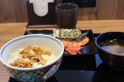 開店時から昼11時まで提供されるメニューで、焼魚、納豆、海苔、生卵、みそ汁、ご飯などがセットで提供されます。ご飯の増量、おかわりは無料。