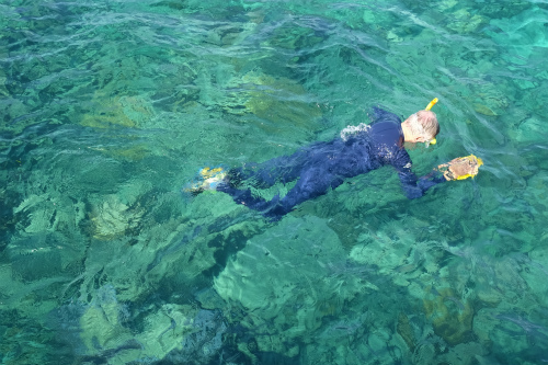 ●桟橋の近くでスノーケリングをしている人を発見しました。水死体ではありません。