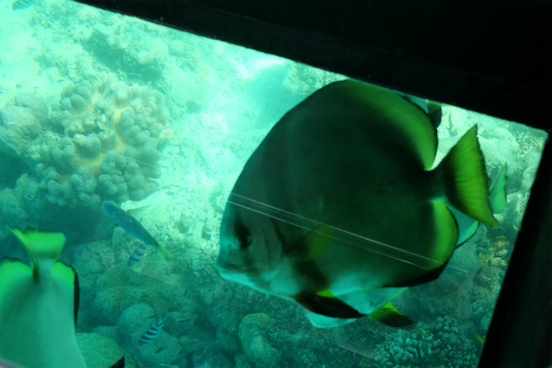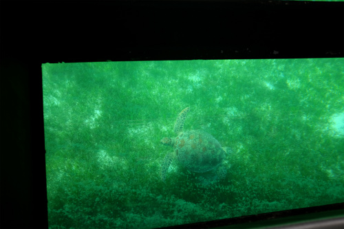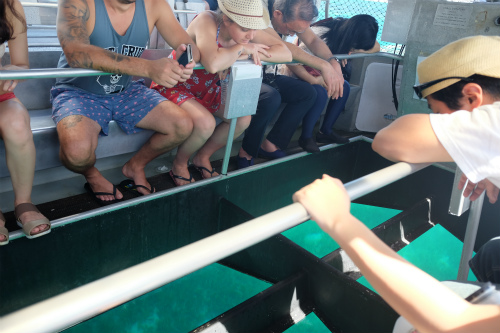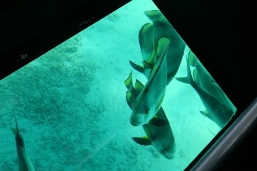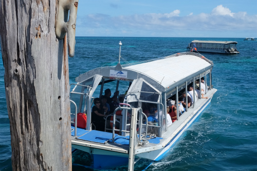 ●グラス・ボトム・ボート(船底がガラス張りになっている)に乗り、魚や珊瑚礁を観察します。