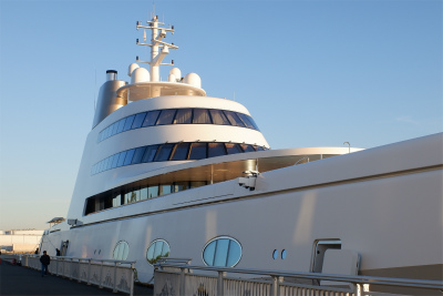 ポートビルの受付嬢に尋ねてみたところ、個人(ロシアの大富豪)が所有する船とのこと。帰宅してから、ネットで調べてみると、建造費が360億円だそうで、びっくりx3。(注:22日に出港したので、もういません。)