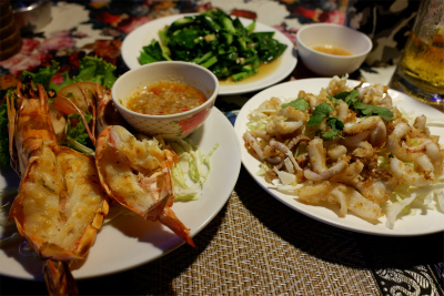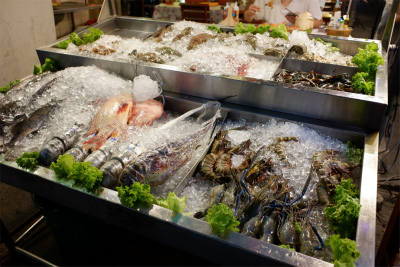 セカンドストリートに出て、海鮮レストランに入りました。材料を選んで、調理してもらうお店です。
