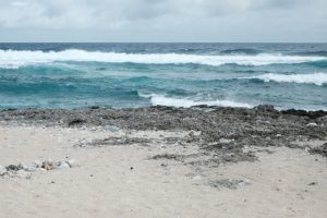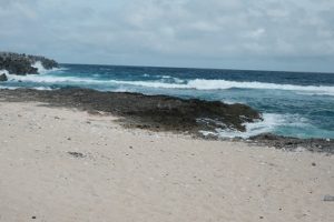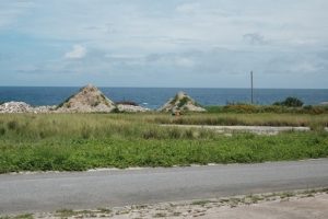 祖納港のナンタ浜バス停で下車すると、昨日最後に訪れたティンバナダが目の前に見えます。きのう登ったのは、巨石の半ばに見える大きな洞窟あたり。