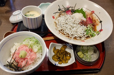 今回は、「梅としらすのおろしそばお好みランチ」に茶碗蒸しを追加でいただきました。お代はちょうど1,490円で、優待券x三枚で支払いました。