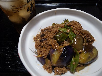 自家製の茄子とピーマンを使って「麻婆茄子」を作りました。