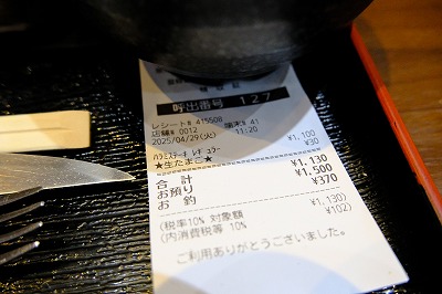 さらに、今年1月初めに利用した時には、ハラミステーキが1,000円から1,100円に値上がりしてたのを覚えてますが、今回は今まで食べ放題だった生卵が有償(一個30円)となりました。