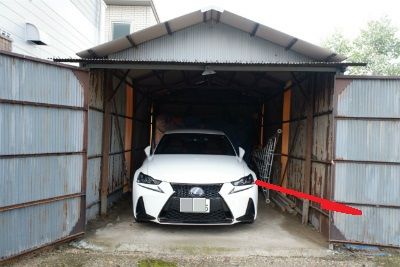 車と車庫の間はかなり距離があります。どうして、これで擦るのか??