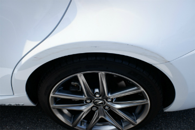 擦り方がひどかったので、損傷はかなり酷いです。一番下の写真でわかるように、バンパーにも傷が付きました。小さいですが、傷修復のためバンパー外しが必要とのこと。