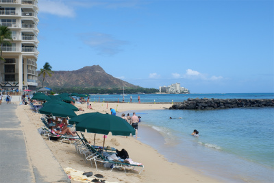 そして、午後から日焼けスタート。ヒルトンの前からスタートし、東方向へ移動しました。