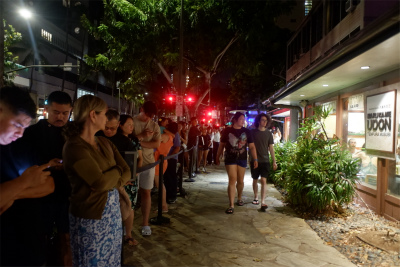 コンドに戻ると、丸亀の前には長蛇の列ができてました。夜の八時半。