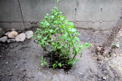 だんだん植木をする場所がなくなってきました。敷地の北側で、2月のオーストラリア旅行記念のユーカリの隣です。陽当たりが心配ですが、ユーカリの生育状況を見る限り大丈夫そう。