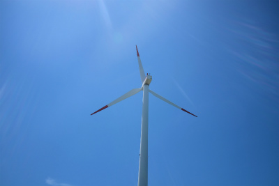 2基建っている風車もこのビーチの名物です。風力発電した電気は新舞子マリンパークで使用し、残りを電力会社に売電しているそうです。